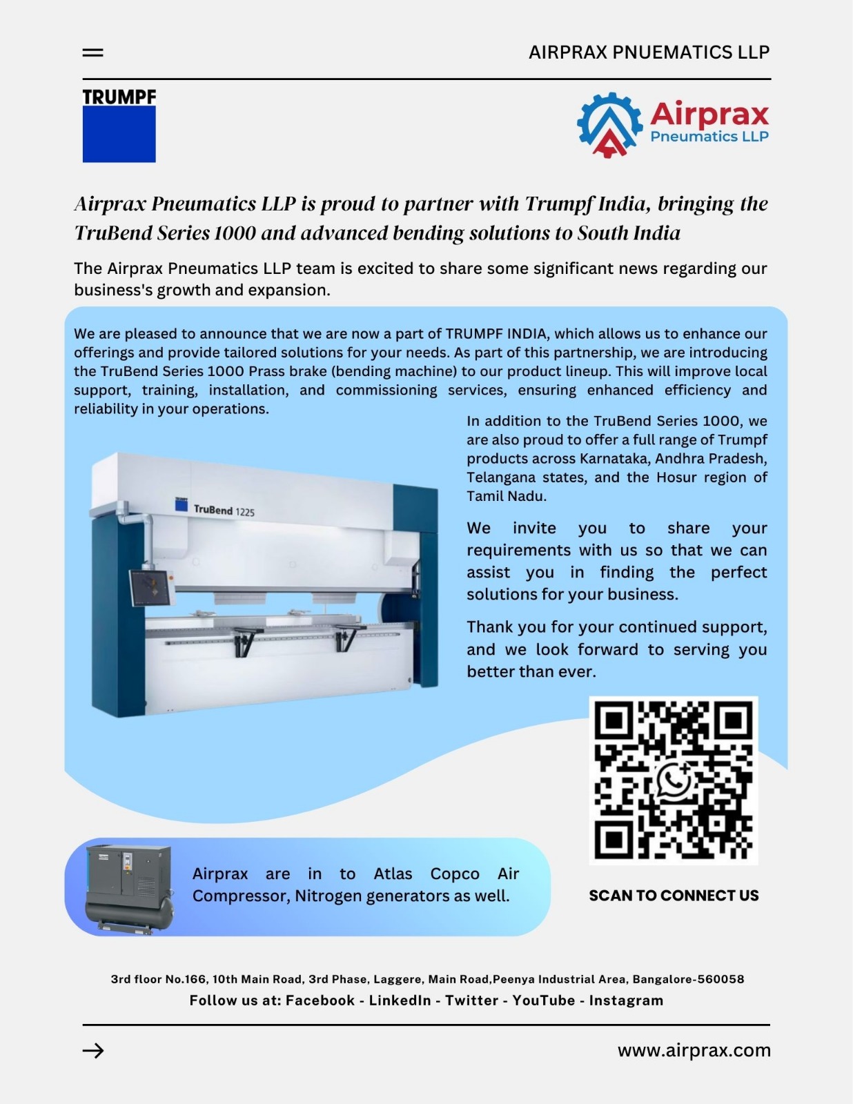 Airprax Joins Hands with TRUMPF IndiaThe Airprax Pneumatics LLP team is excited to share an important milestone in our journey of gr...